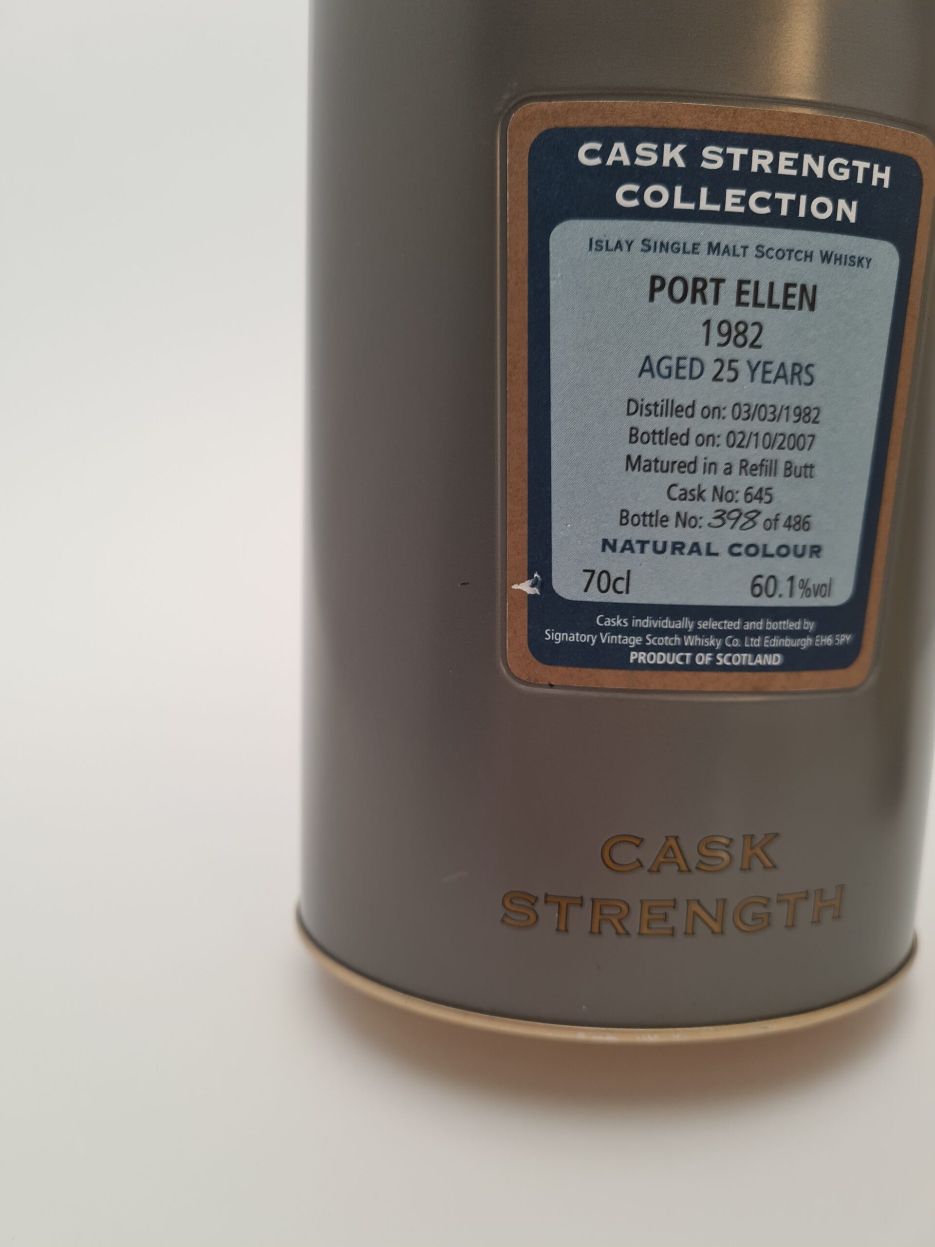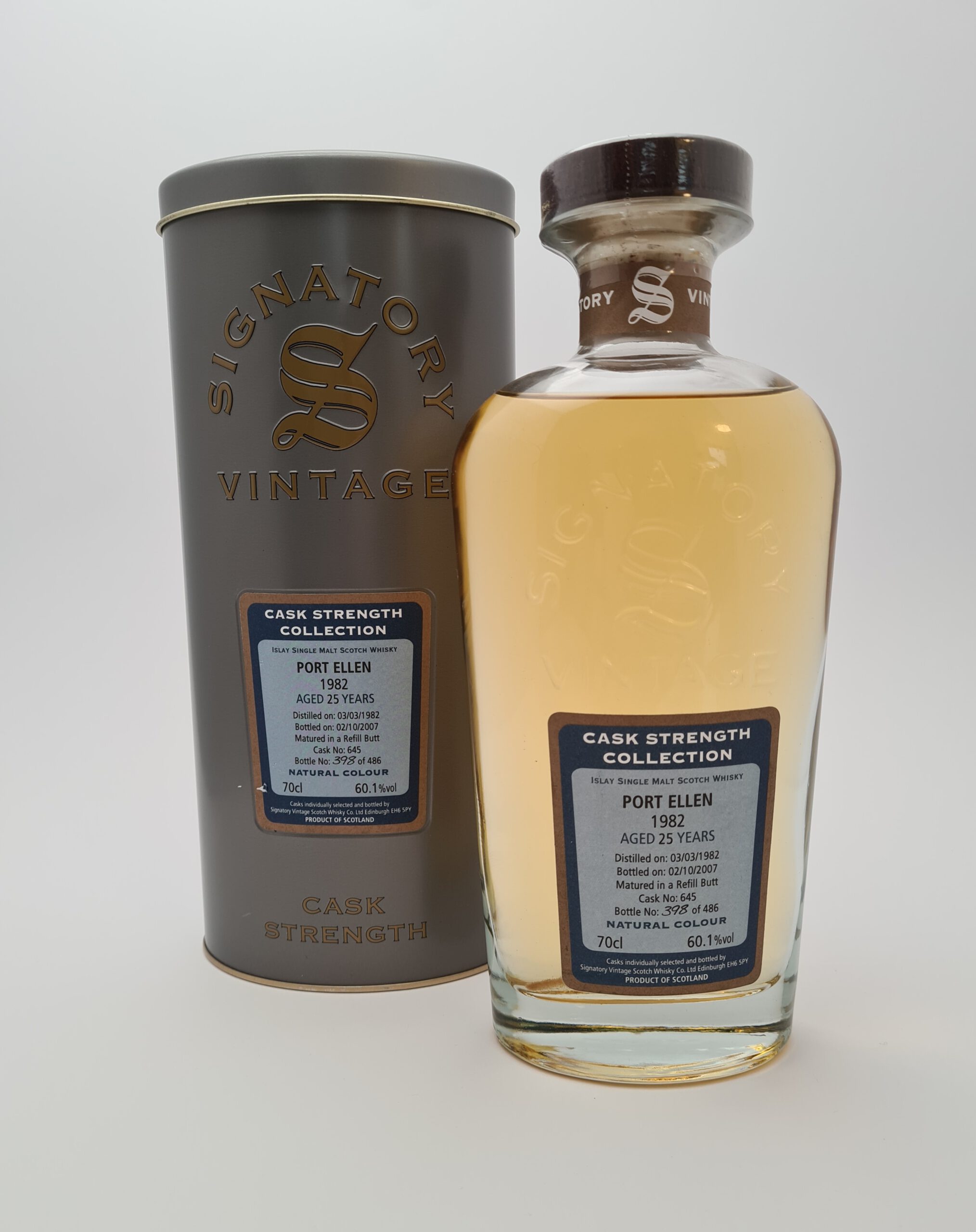 Port Ellen 25 yo (1982/2007), Signatory – Cask Strength Collection (cask #645), 60.1%